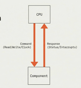 The CPU may periodically check the printer’s status (e.g., paper jam, ink level) by querying the controller.