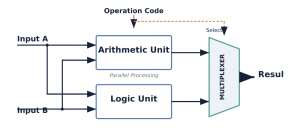 Logic: Makes logical comparisons (AND, OR, NOT, XOR) for true/false outcomes.
