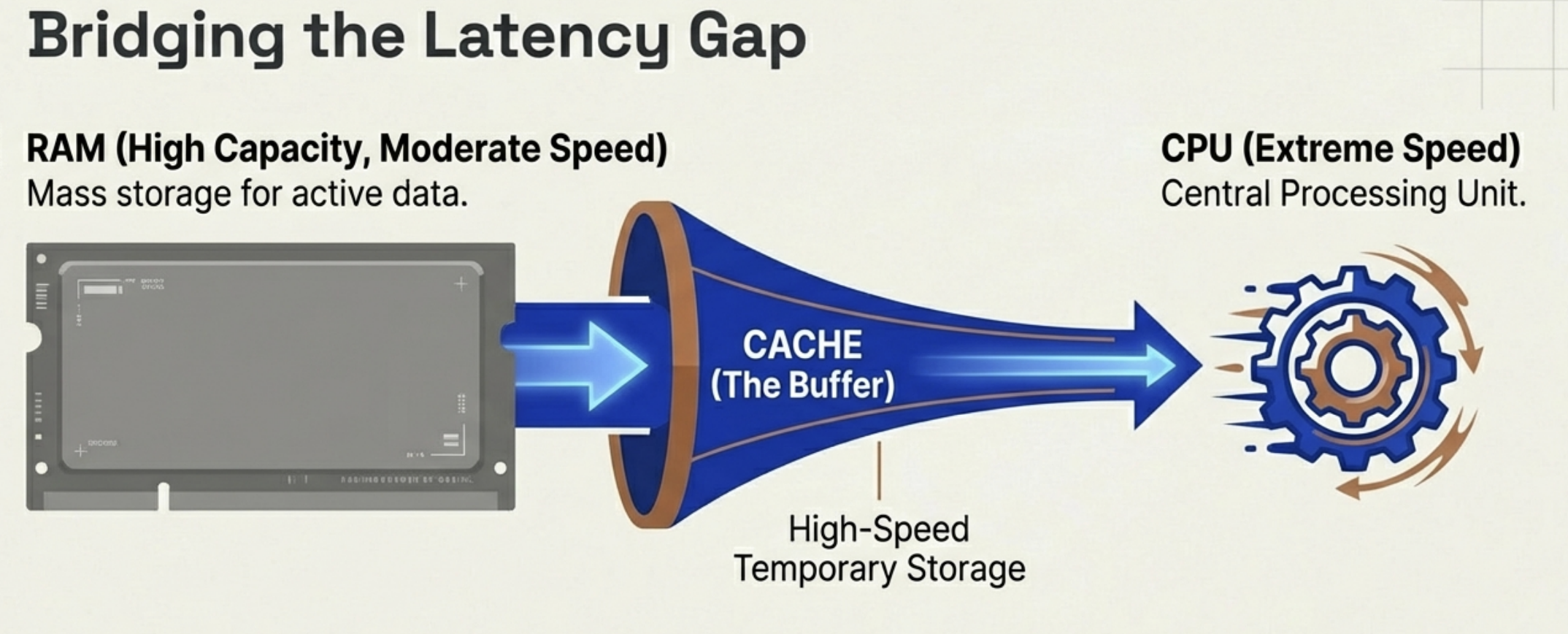 CPUs process data incredibly fast. If the CPU had to wait for RAM every time it needed data, it would sit idle most of the time. Cache stores the most frequently used data so the CPU does not have to wait.
