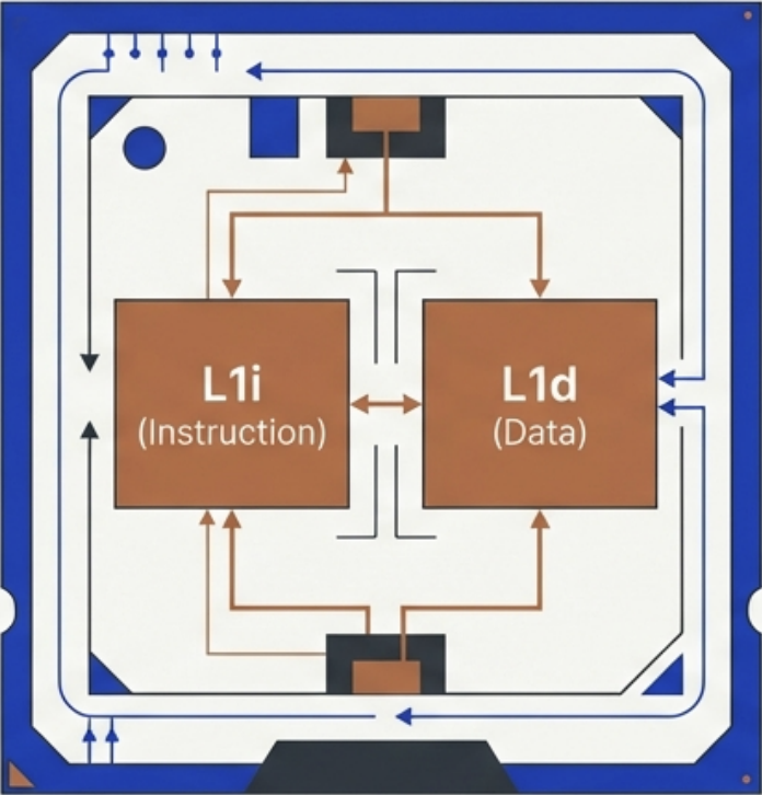 The Split: It is usually divided into two distinct sections: L1i stores instructions (what to do) and L1d stores data (what to process).
