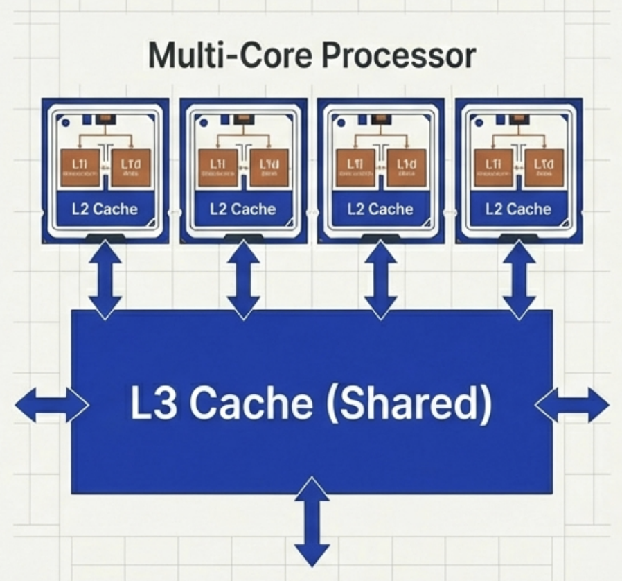 While slightly slower than L1, it prevents the processor from having to reach all the way out to RAM, acting as a secondary line of defense against latency.