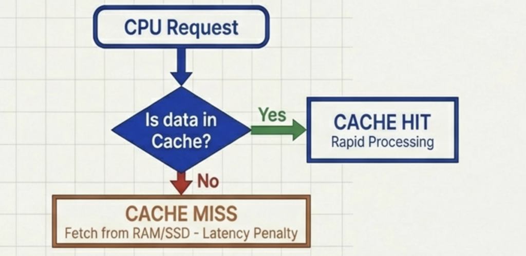 Cache Hit: The ideal scenario. The CPU requests data and finds it waiting in the cache.